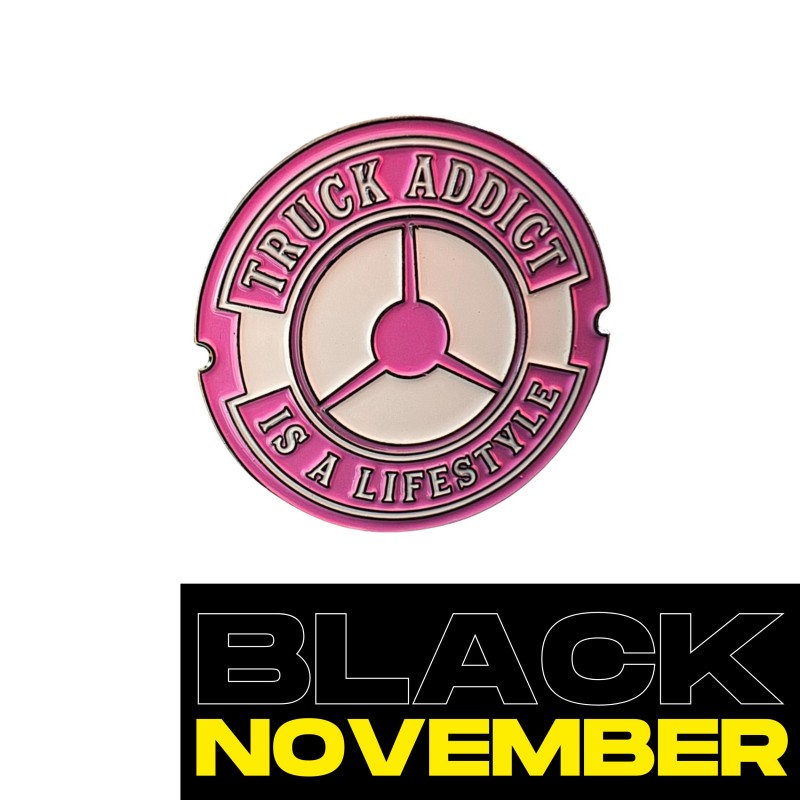Ajouter du style votre look en montrant votre passion pour le monde du camion avec ce pin's Truck Addict is a lifestyle en coloris rose et blanc.