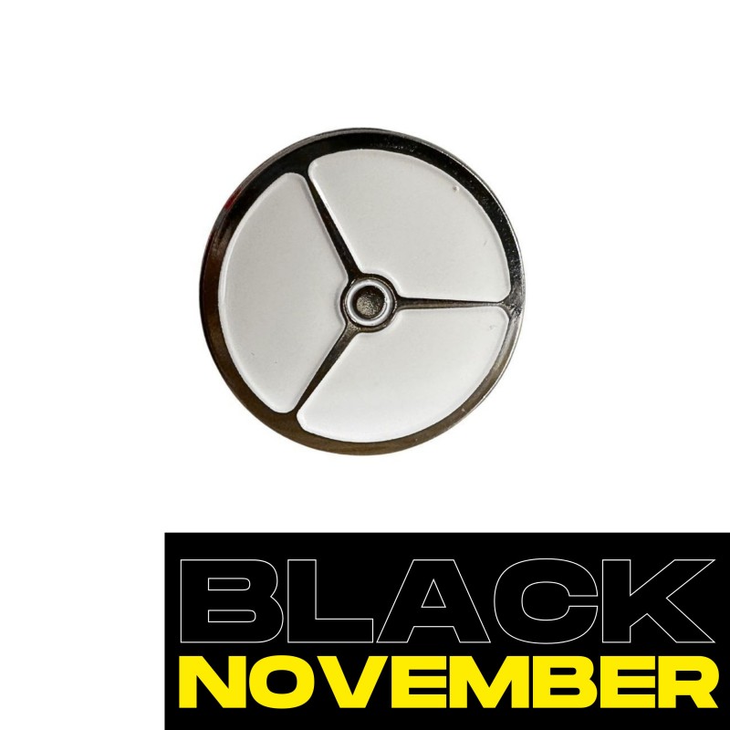 Démontrez votre appartenance à la communauté routiers grâce à ce pin's volant 3 branches coloris blanc et noir.