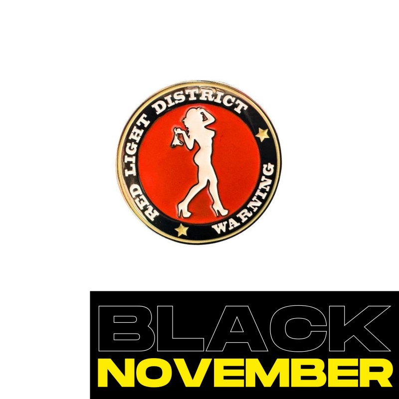 Découvrez notre Pin's pin-up 3 Red Light District Warning coloris noir, blanc et rouge une touche de couleur et de style qui donnera du caractère à vos tenues et accessoires !