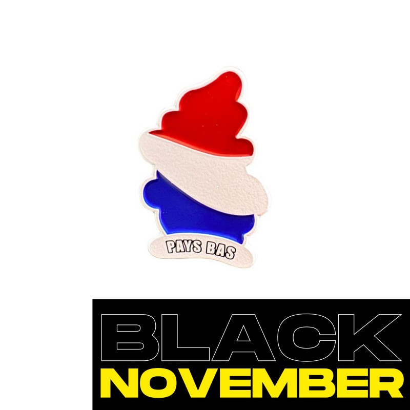 Ce pins arbore un sapin stylisé, surmonté des couleurs distinctives des Pays-Bas 🇳🇱