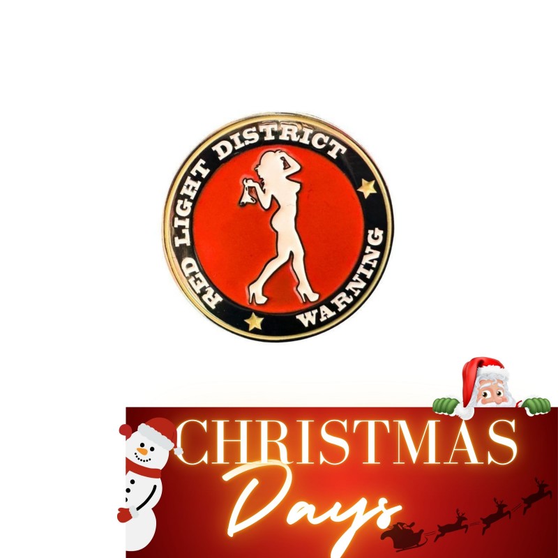 Découvrez notre Pin's pin-up 3 Red Light District Warning coloris noir, blanc et rouge une touche de couleur et de style qui donnera du caractère à vos tenues et accessoires !