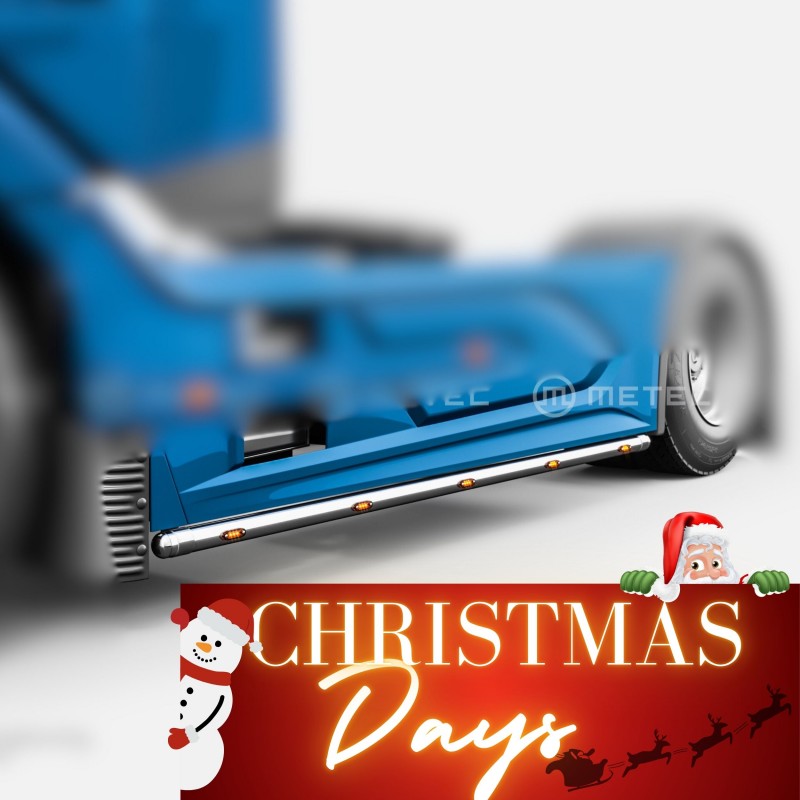 Fabriquées en inox poli de haute qualité, elles apportent une touche de finition élégante tout en renforçant la visibilité nocturne grâce à ses 5 feux LED orange intégrés. Un accessoire à la fois esthétique et fonctionnel, conçu pour durer dans le temps et résister aux conditions exigeantes du transport routier.