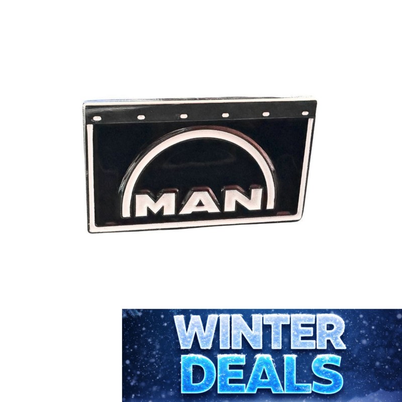 Un pin's original reprenant le style des bavettes MAN, pensé pour les amateurs de poids lourds et les collectionneurs d’accessoires routiers.