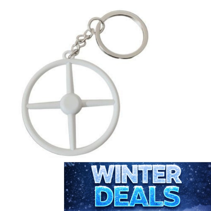 Un porte-clés original en forme de volant 4 branches blanc, conçu pour les passionnés de camions qui veulent allier style et utilité au quotidien.