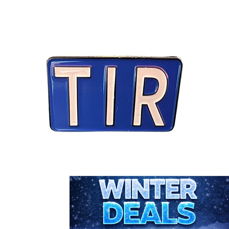 Un pin's incontournable qui représente le marquage TIR en bleu, symbole emblématique du transport routier international.