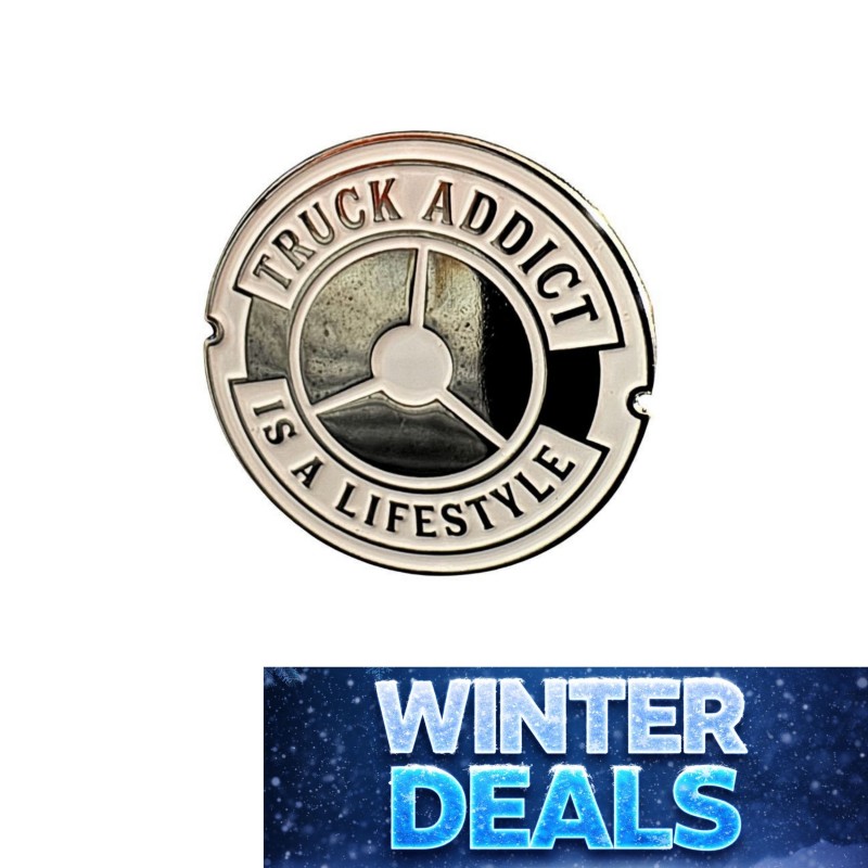 Mettez en avant votre passion camion avec le pin's Truck Addict is a lifestyle coloris blanc et chrome.