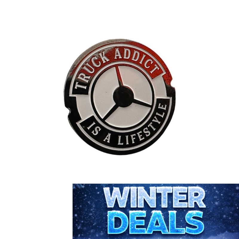 Soyez fiers de faire partie de la communauté des routiers avec notre Pin's Truck Addict is a lifestyle coloris chrome et blanc