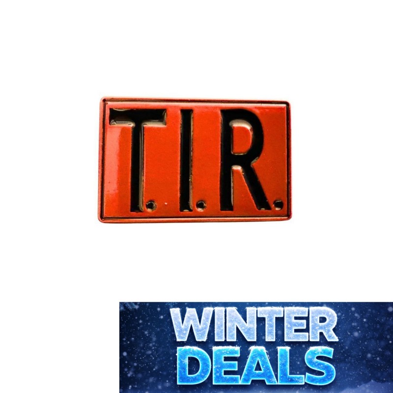Affichez votre passion du monde routier avec le pin's en forme de plaque TIR rouge.
