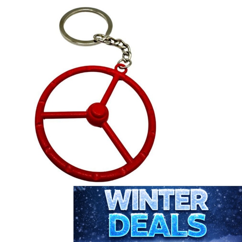 Ajoutez une touche routière à vos clés avec le porte-clés Volant 3 Branches rouge de 5 cm avec accroche