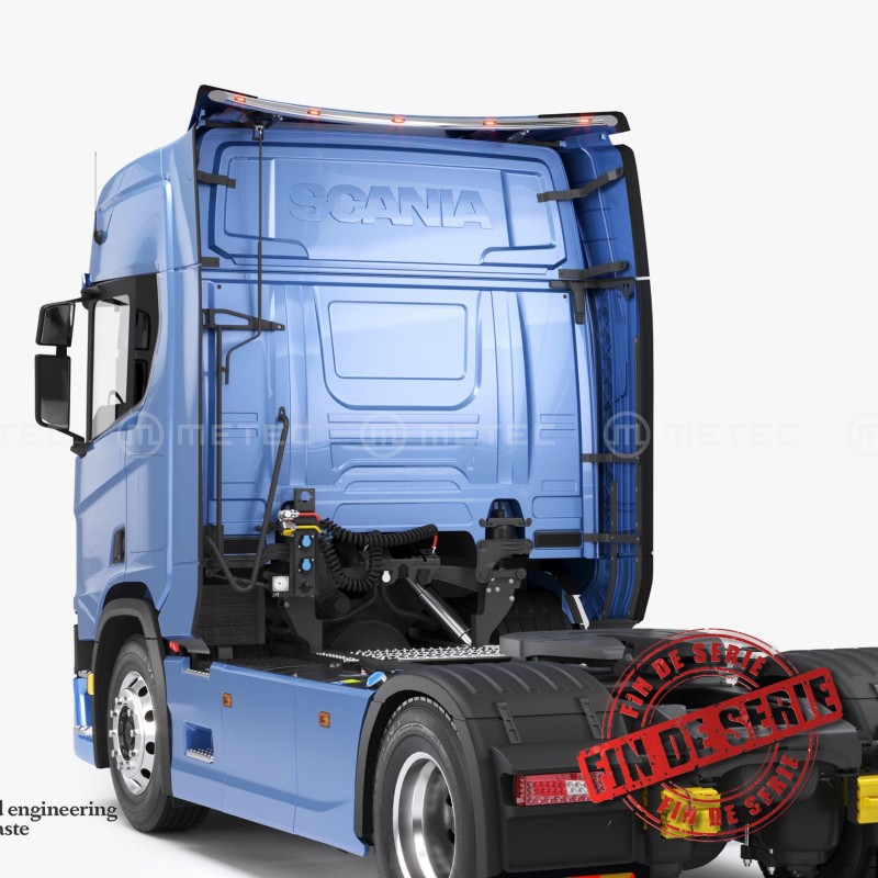 Cette rampe arrière de cabine Scania est idéale pour les conducteurs souhaitant valoriser leur camion tout en améliorant la sécurité sur route. Compatible avec les modèles Scania R et S Next Generation, elle s’installe sur le haut du déflecteur arrière.